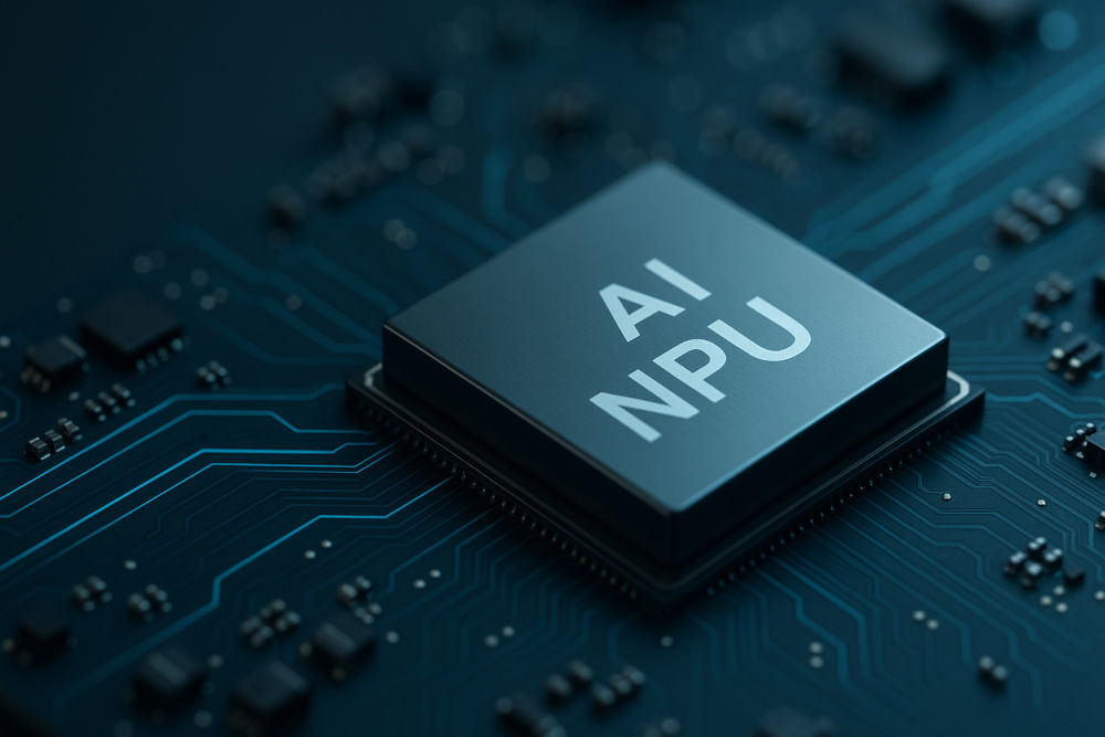 AI NPU chip σε μητρική πλακέτα, τεχνολογικό close-up